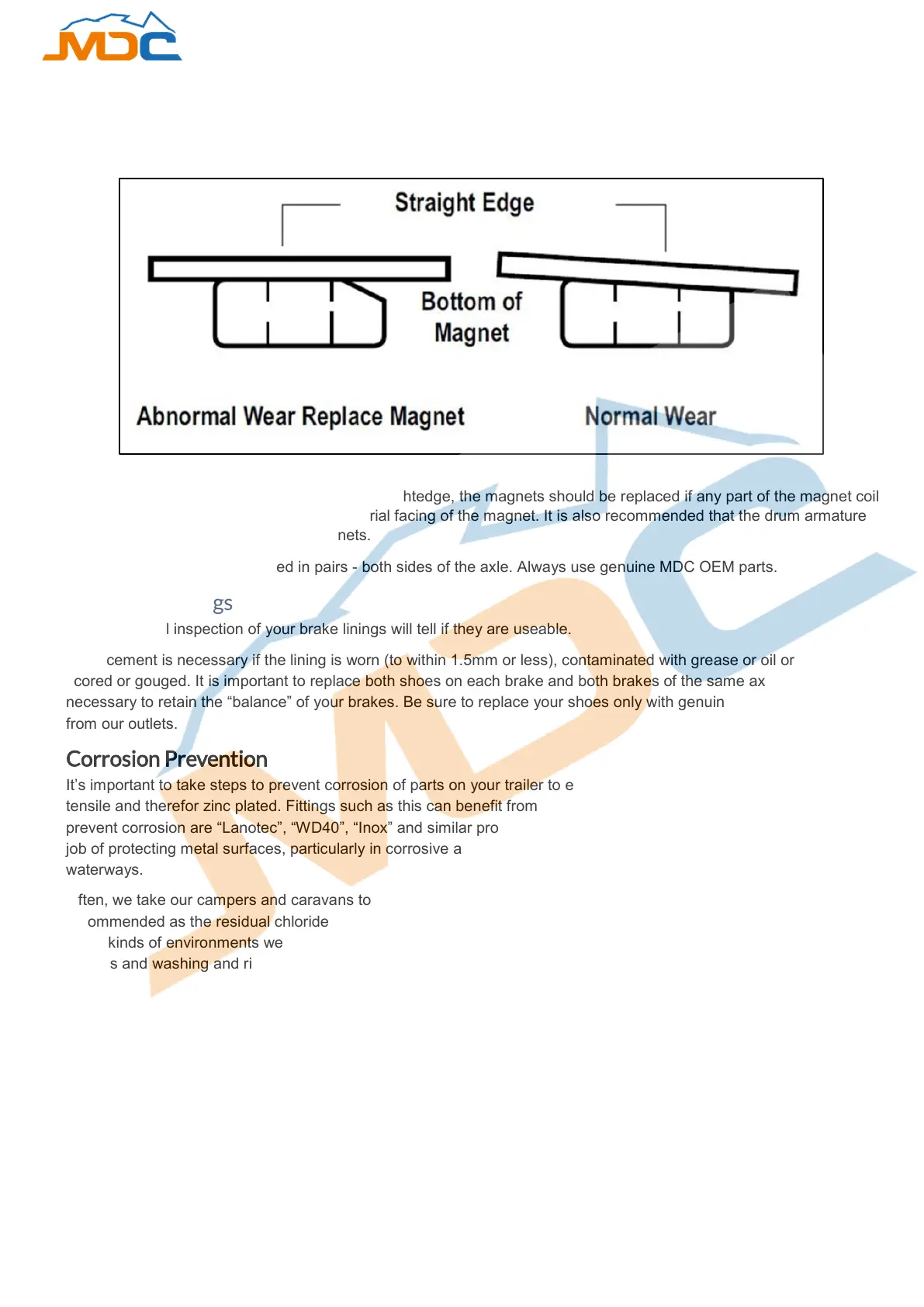necessary to retain the “balance” of your brakes. Be sure to replace your shoes only with genuine MDC parts available