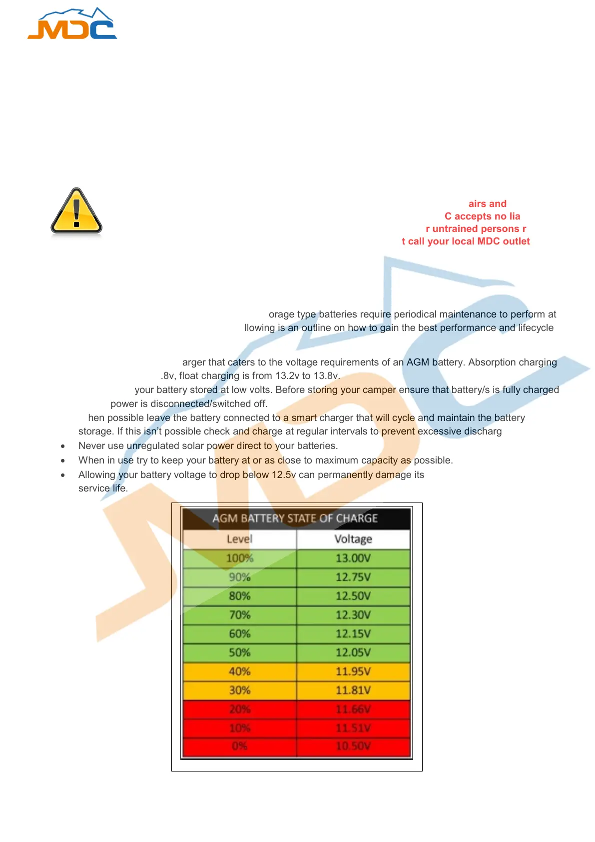 • Allowing your battery voltage to drop below 12.5v can permanently damage its performance and reduce its