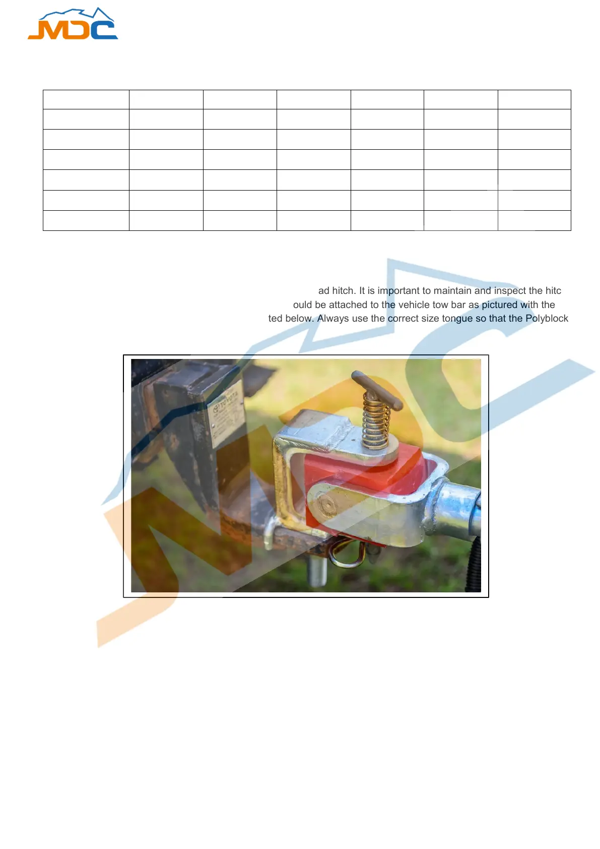 Your camper is fitted with an ADR compliant Polyblock Off-Road hitch. It is important to maintain and inspect the hitch