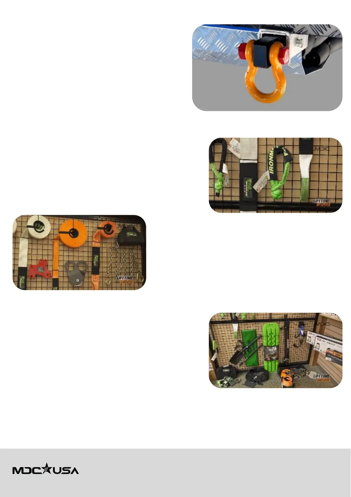 • Helps distribute force evenly, reducing strain on tow points, recovery