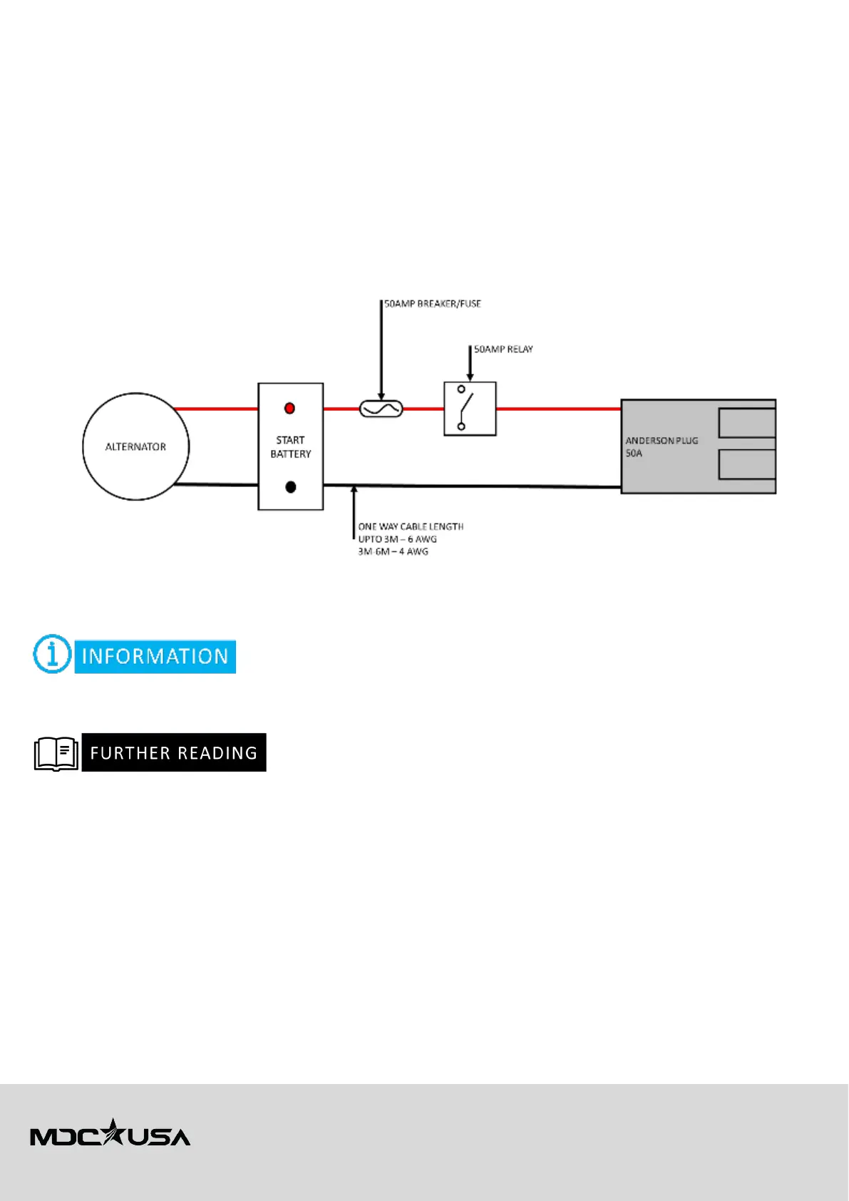 2. 50A Fuse or Circuit Breaker: This should be placed at the vehicle’s battery connection point. It serves as a safeguard