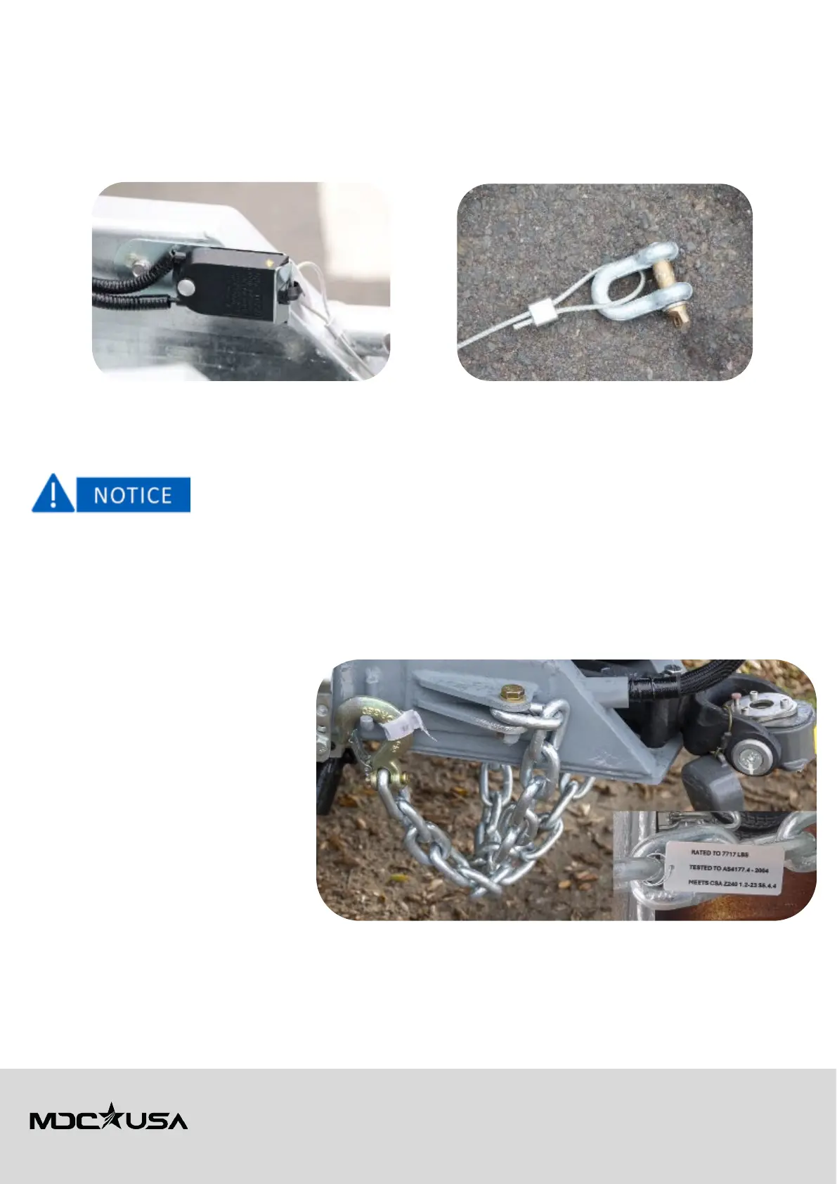 • DO NOT CONNECT THE BREAKAWAY LANYARD TO THE SAME POINT AS THE SAFETY CHAIN SHACKLES.