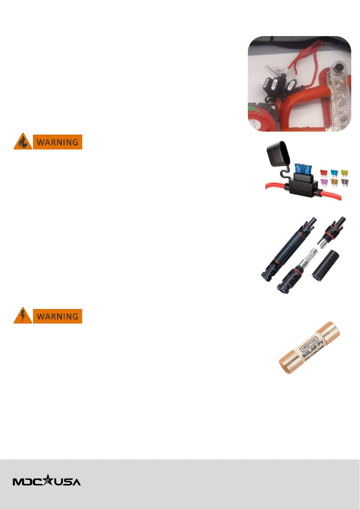 • Each solar panel has its own dedicated fuse to prevent overcurrent damage.