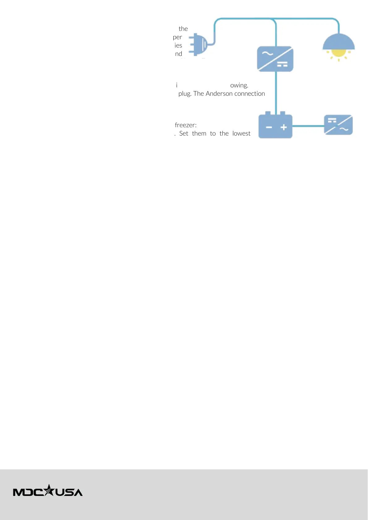 • Use the Anderson plug connection instead of the 12V plug. The Anderson connection