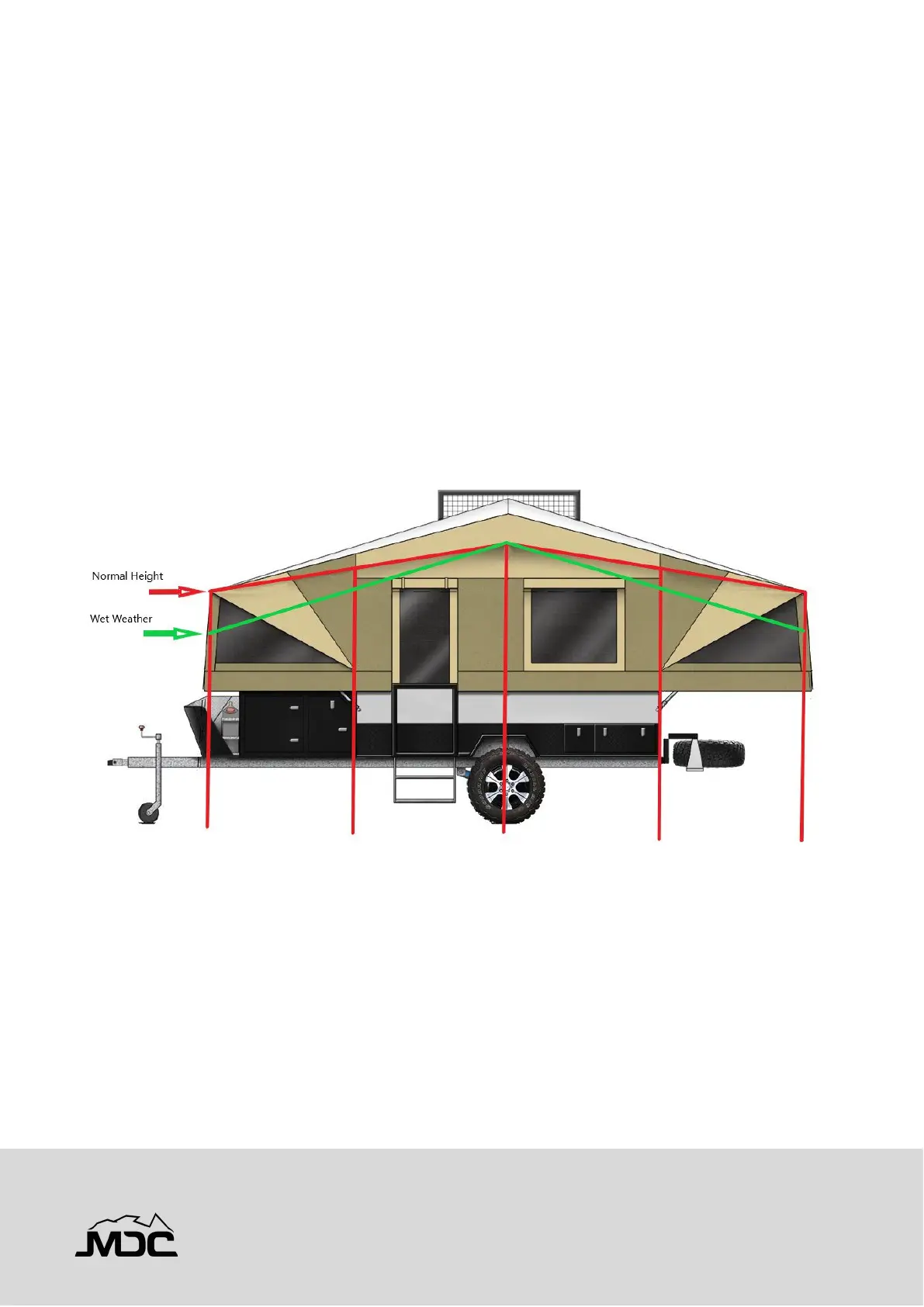 on the roof. Additionally, in soft floor campers it is advisable to lower the back corner pole opposite the bed and