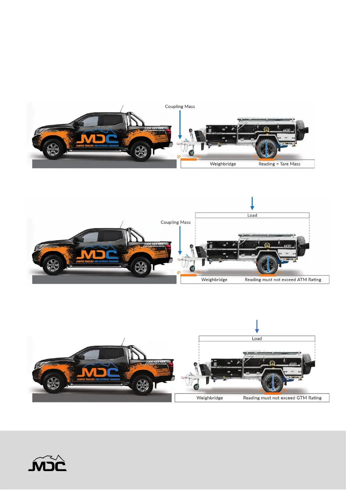 ATM (Aggregate Trailer Mass) Rating: The total permissible mass of the Trailer. This includes the coupling
