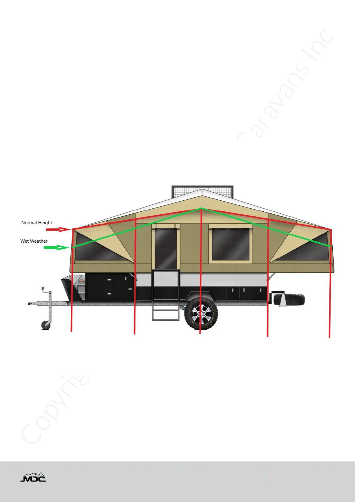 prepare for wet conditions it is advisable in most cases to increase the pitch of the awning/annex roof by lowering