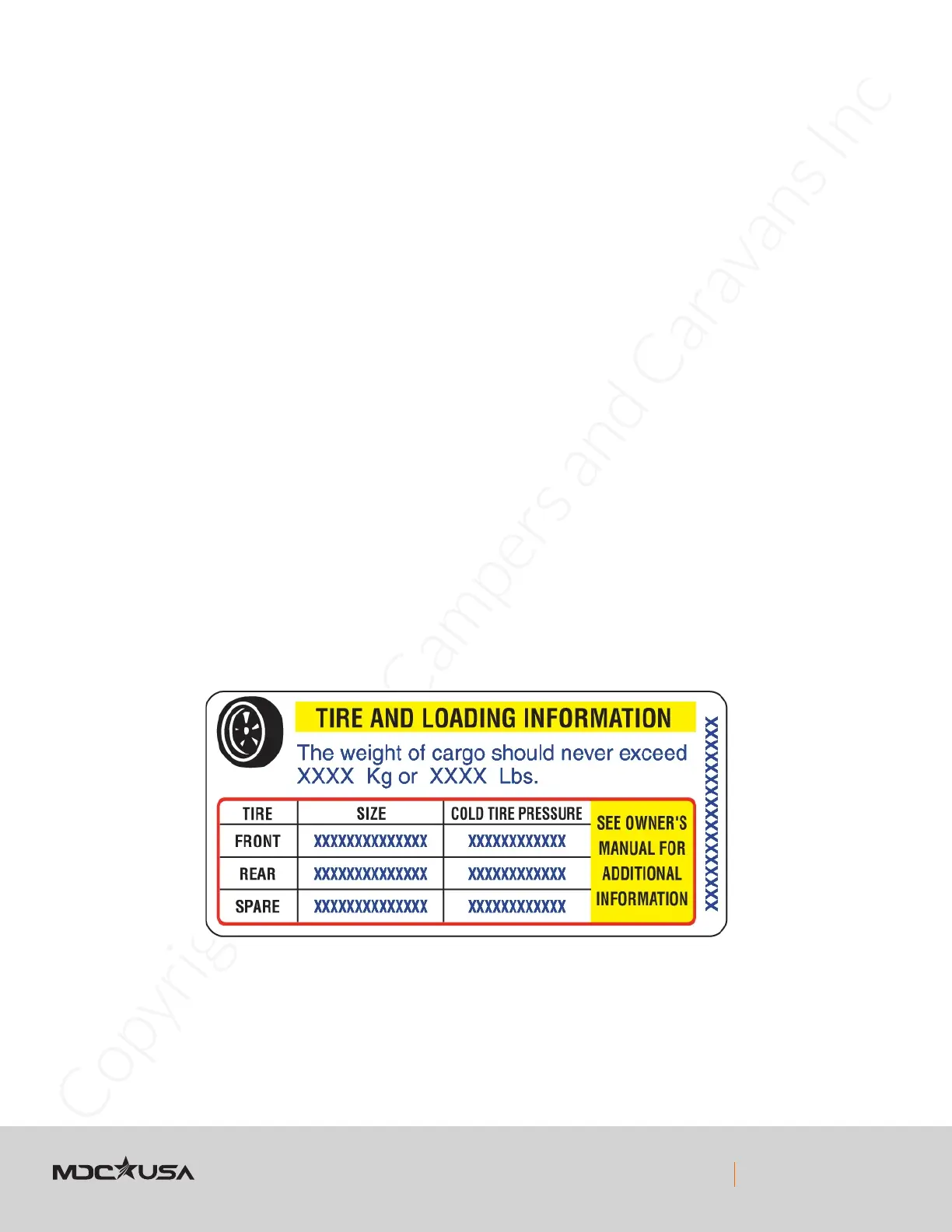 The trailer’s placard refers to the Tire Information Placard attached adjacent to or near the trailer’s VIN (Certication)