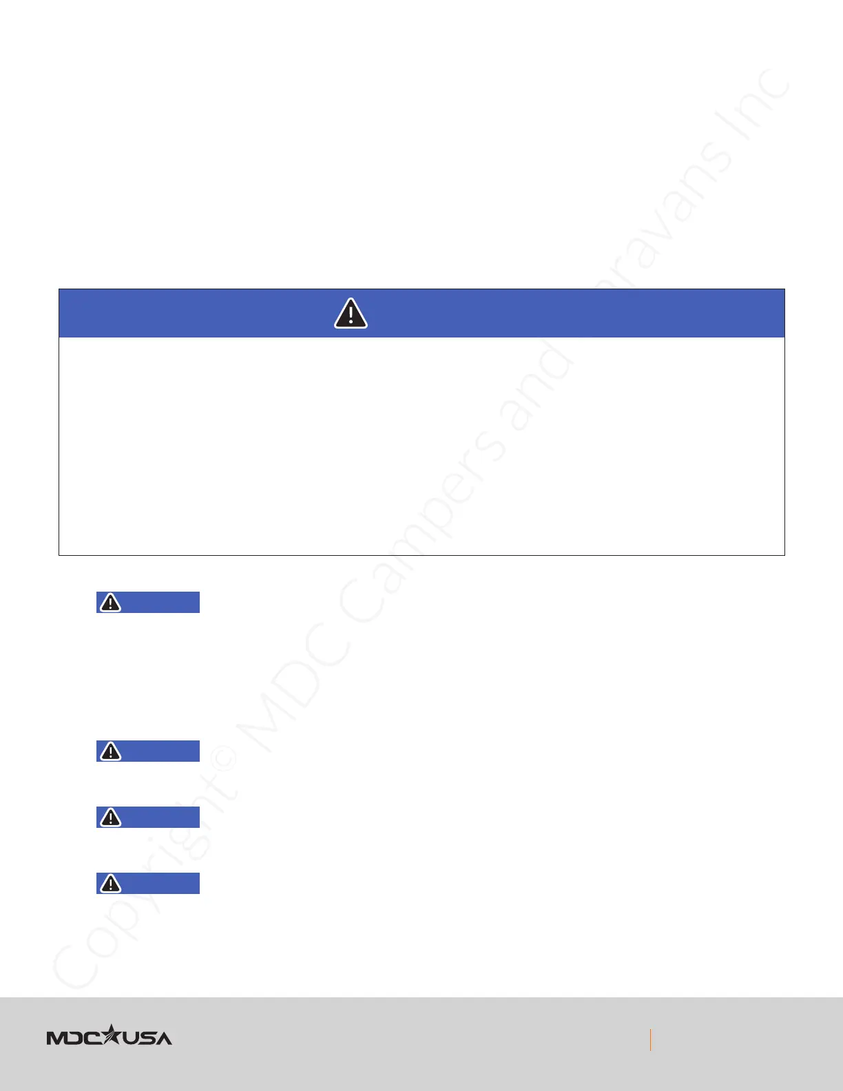 • Winter operation will not protect the RV’s entire water system. Water lines, faucets, water tanks and