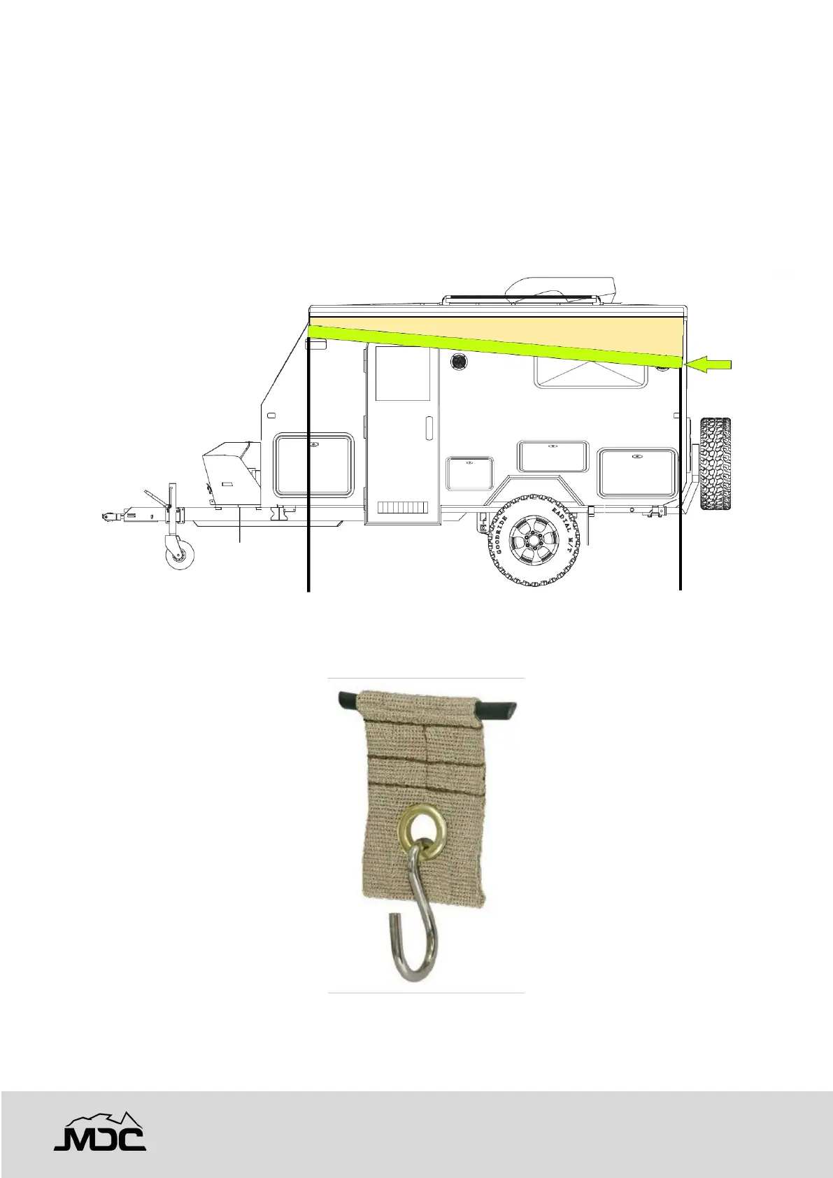 When extending the awning always support to front as it extends. Do not allow the awning to carry the full