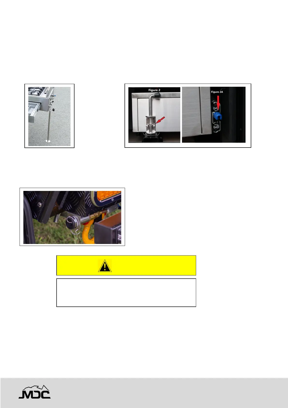 To extend the kitchen from the caravan, press down the blue slide tab, raise the pad bolt and pull kitchen out.