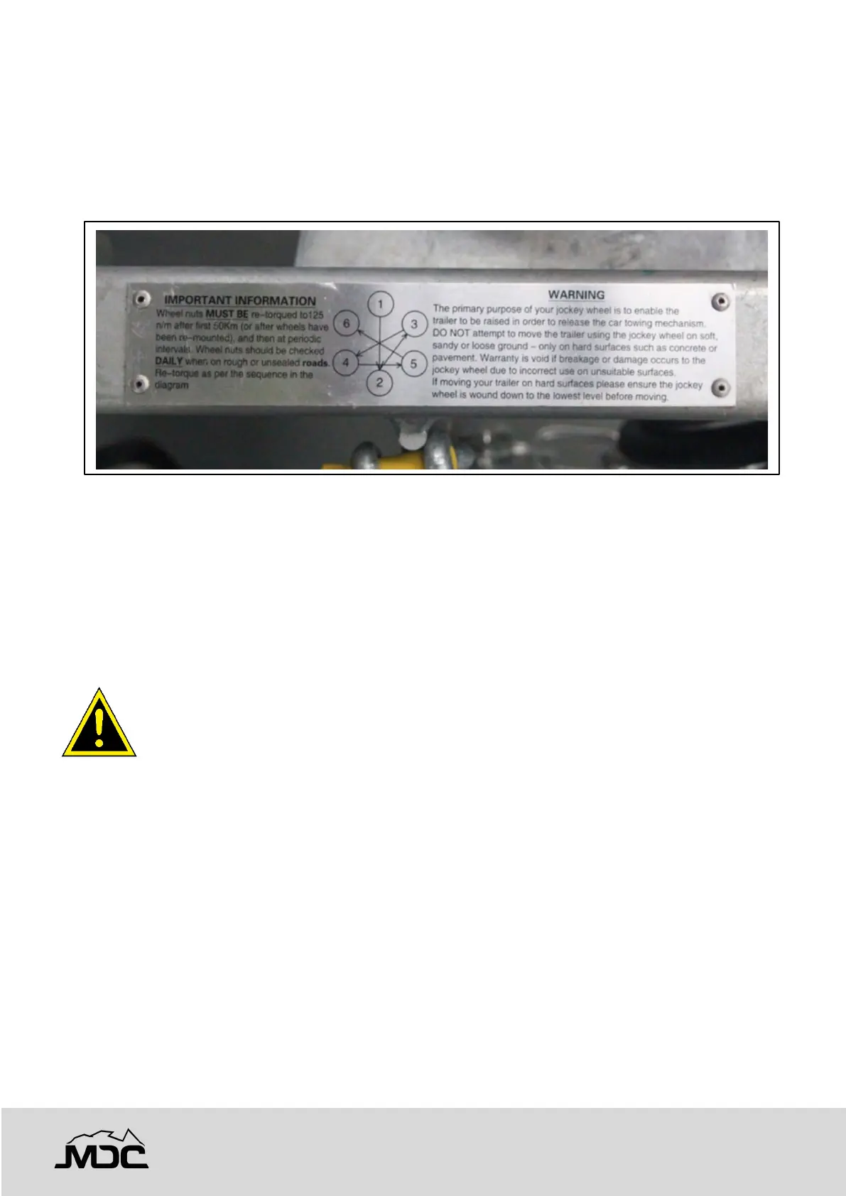 steel rims. Refer to the plate on your drawbar.