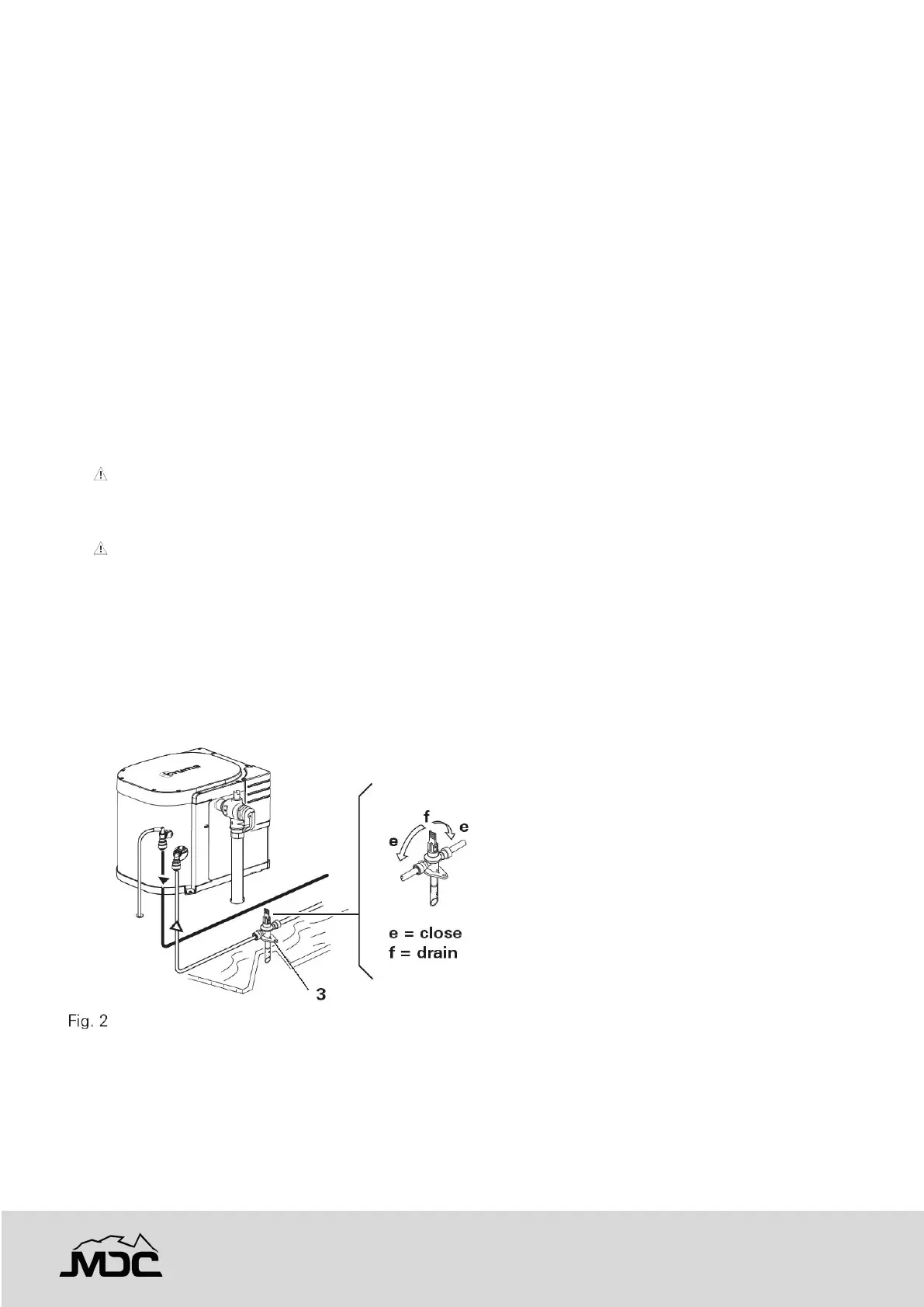 • Close drain valve (Fig. 2 - 3). Lever in the “e” position (close).