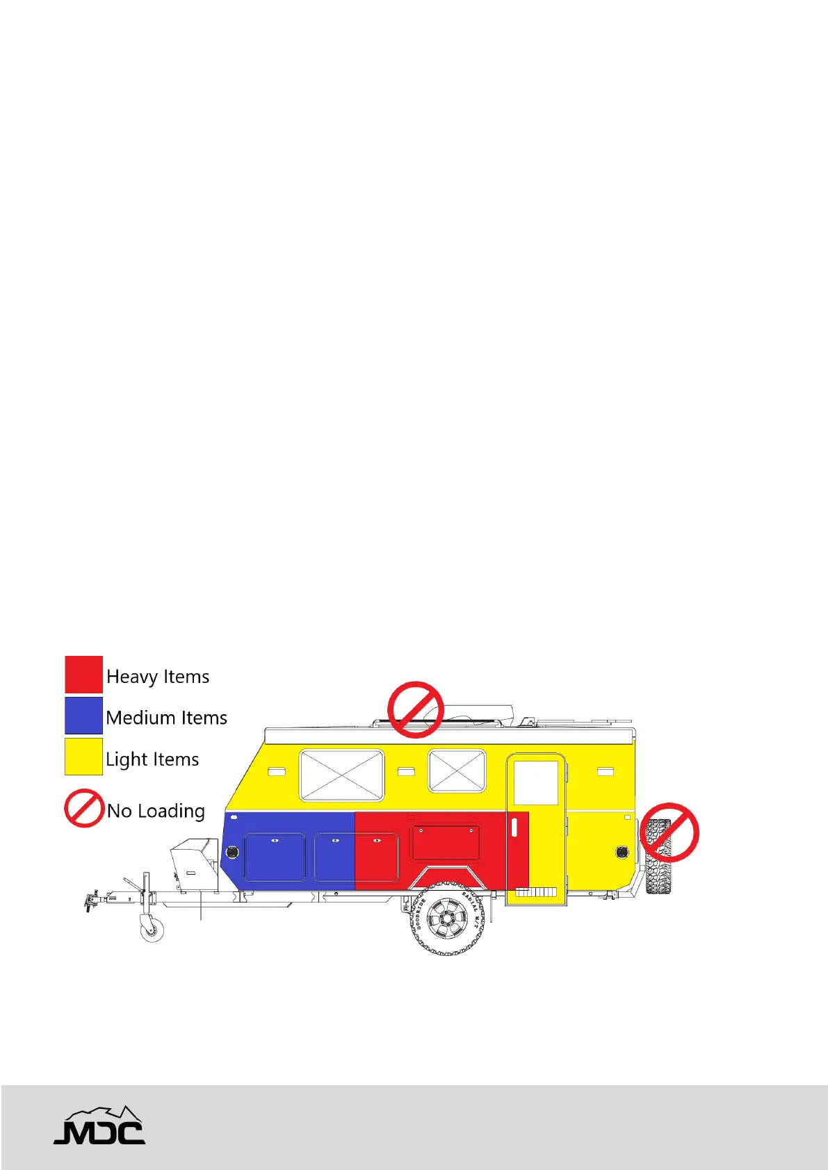• Ensure no items can move during travel. Secure all items to prevent damage to the caravan.