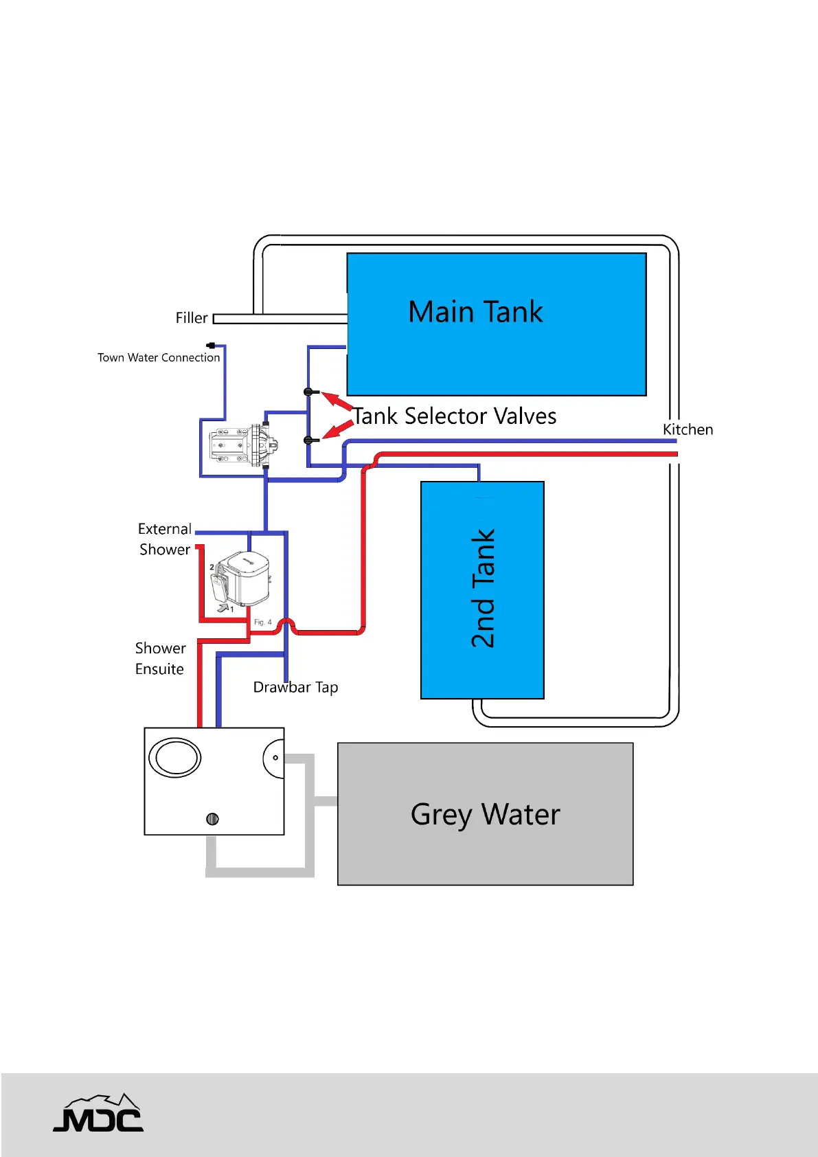 To switch between the supply tanks, locate the valved beneath the caravan underneath the driver’s side