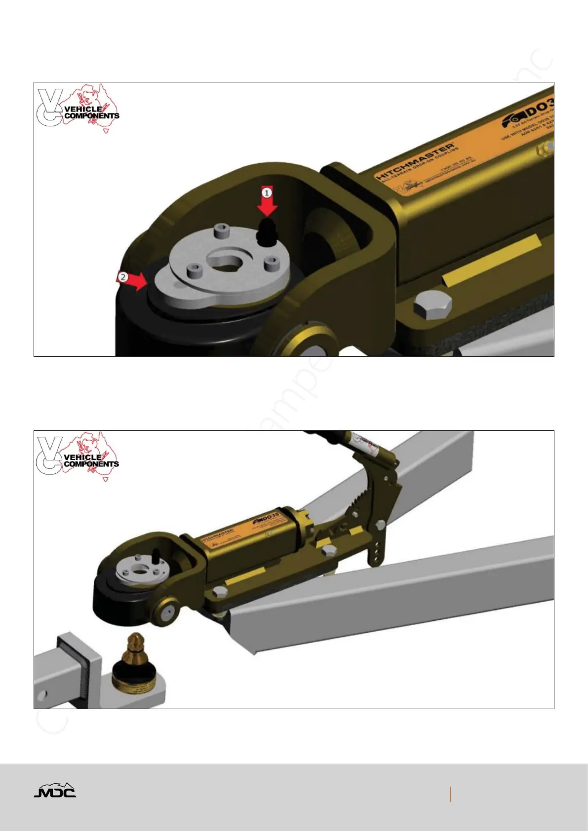 Locking plate should be in unlocked position as shown. Lower the coupling onto the tow pin.