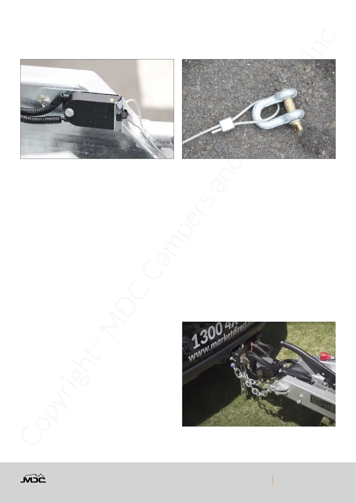 • DO NOT CONNECT THE BREAKAWAY LANYARD TO THE SAME POINT AS THE SAFETY CHAIN