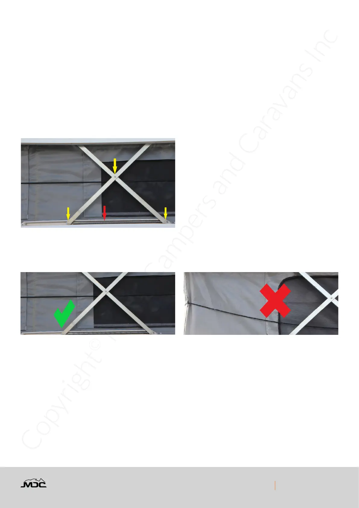 The elastic cord surrounding the PVC roof skirt is placed to ensure the skirt pulls inward when lowering the roof.