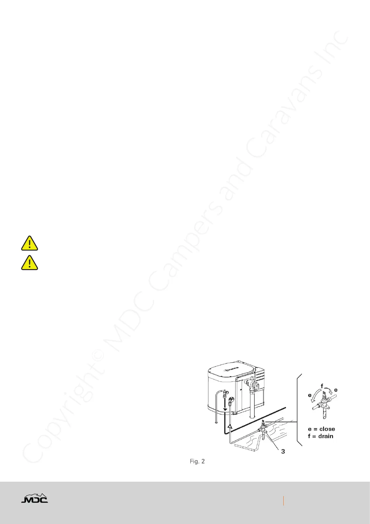 • Close drain valve (Fig. 2 - 3). Lever in the “e”