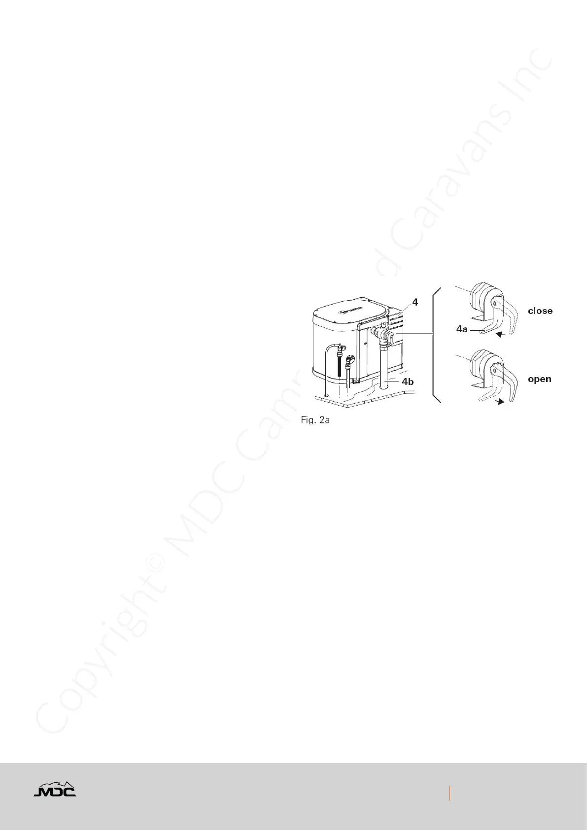 • Open drain valve (Fig.2 - 3). Lever in the “f” position (drain). The water heater is now drained directly to the