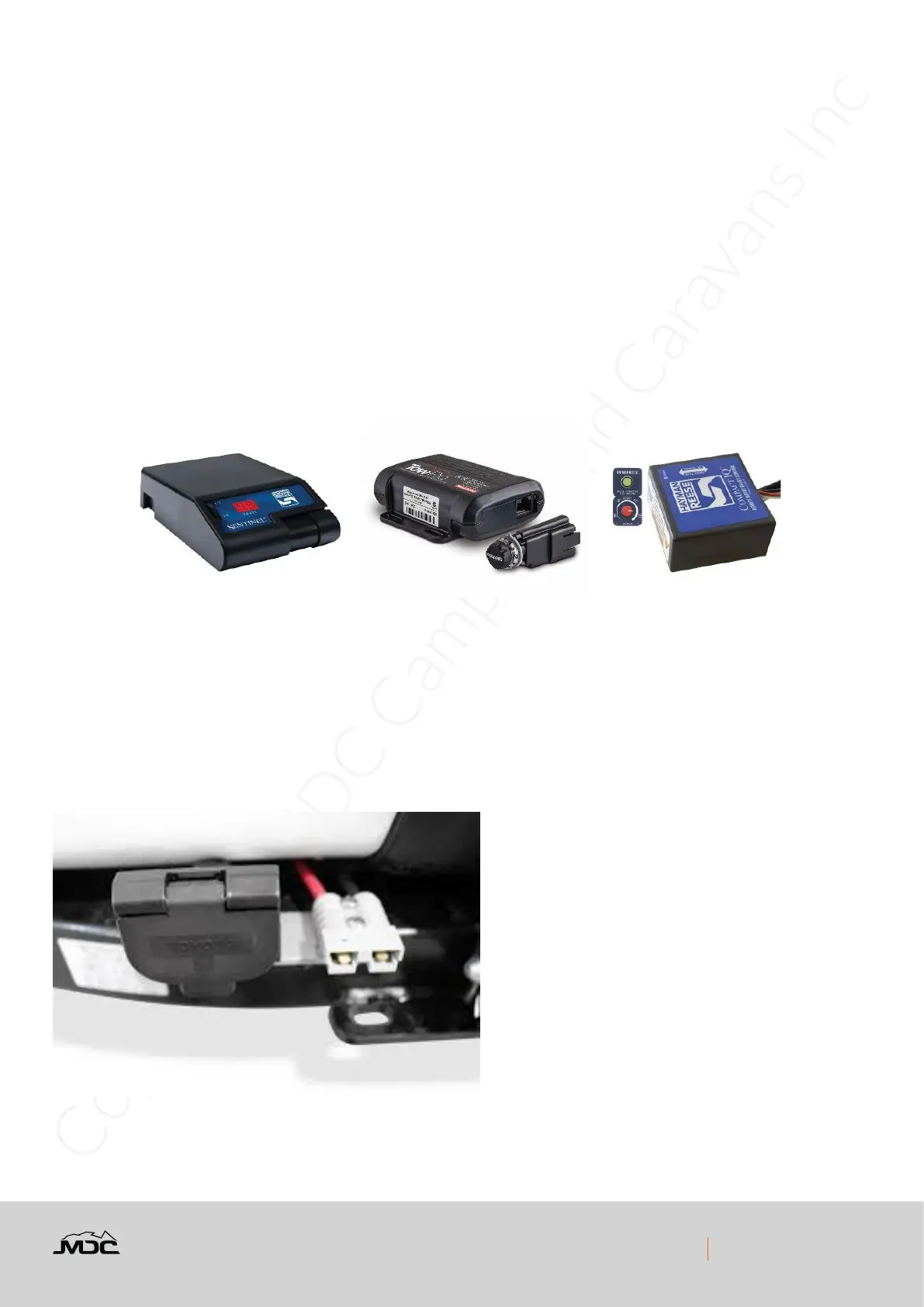 All MDC Caravans require an electric brake controller to be tted to the tow vehicle by law.