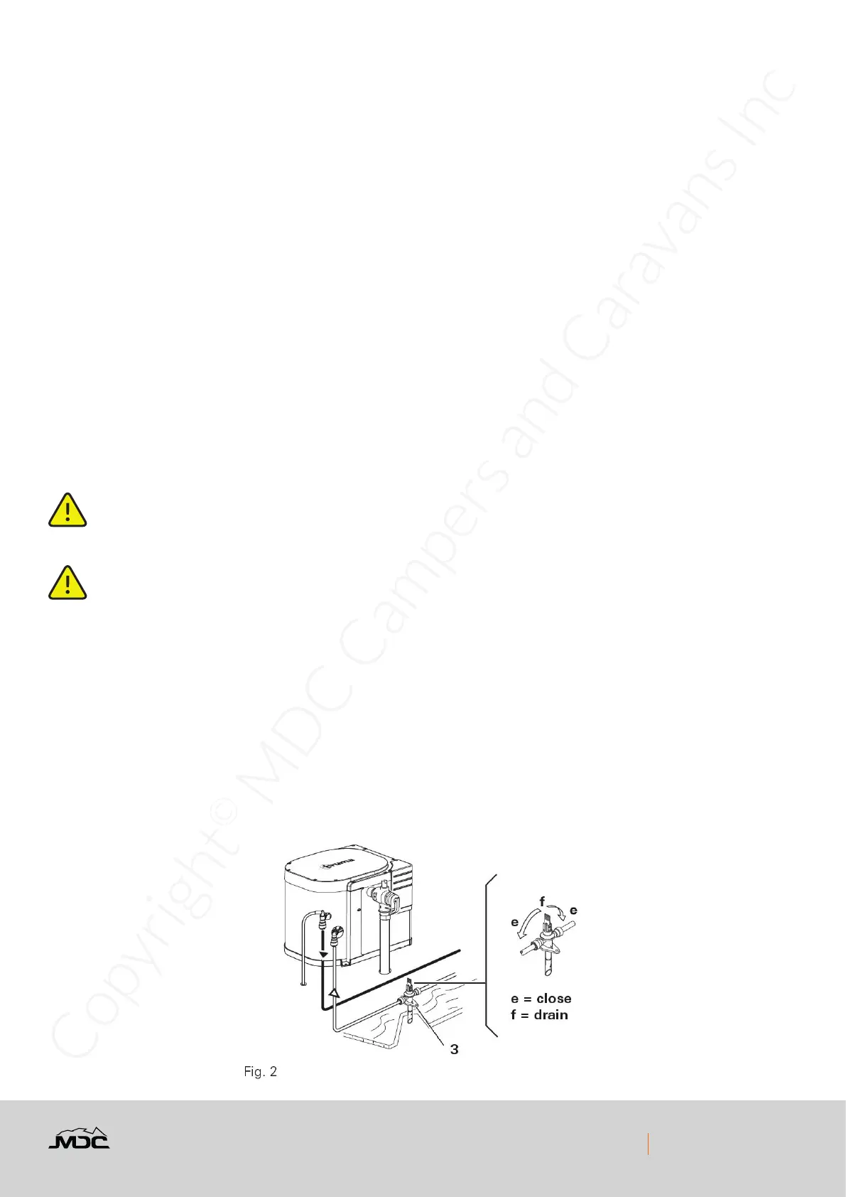 • Close drain valve (Fig. 2 - 3). Lever in the “e” position (close).