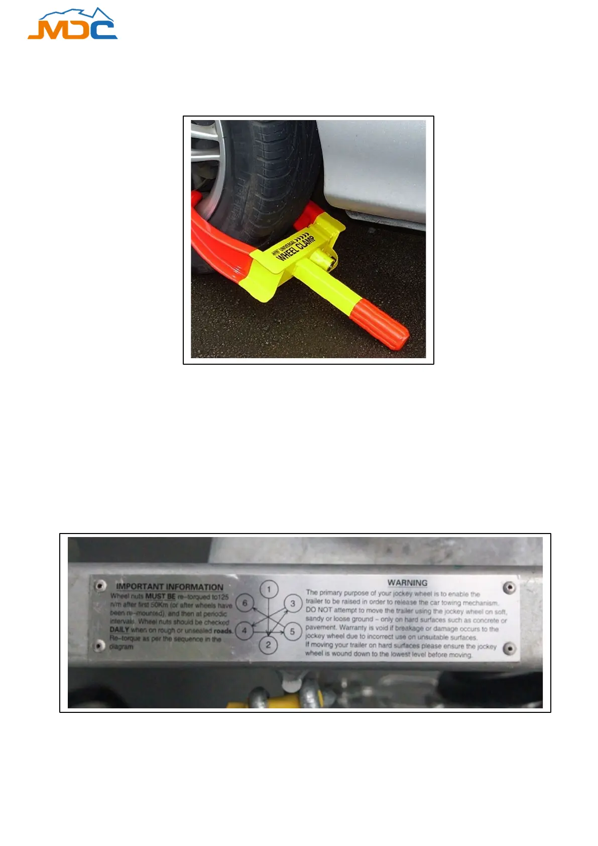 of a handbrake failure. For security a wheel clamp or and hitch lock are highly recommended.