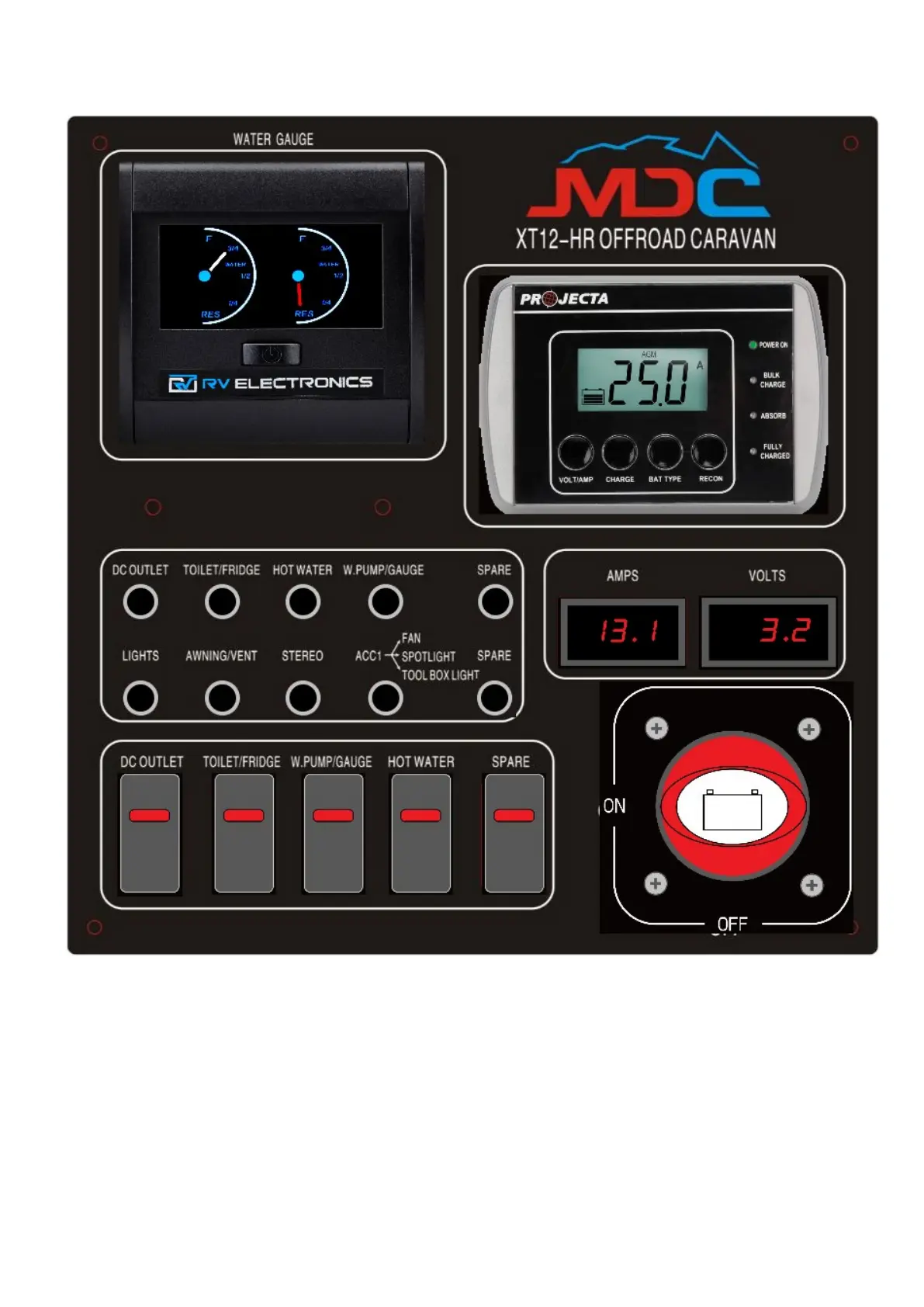 *Voltmeter will indicate battery voltage when idle or charge voltage when charging.