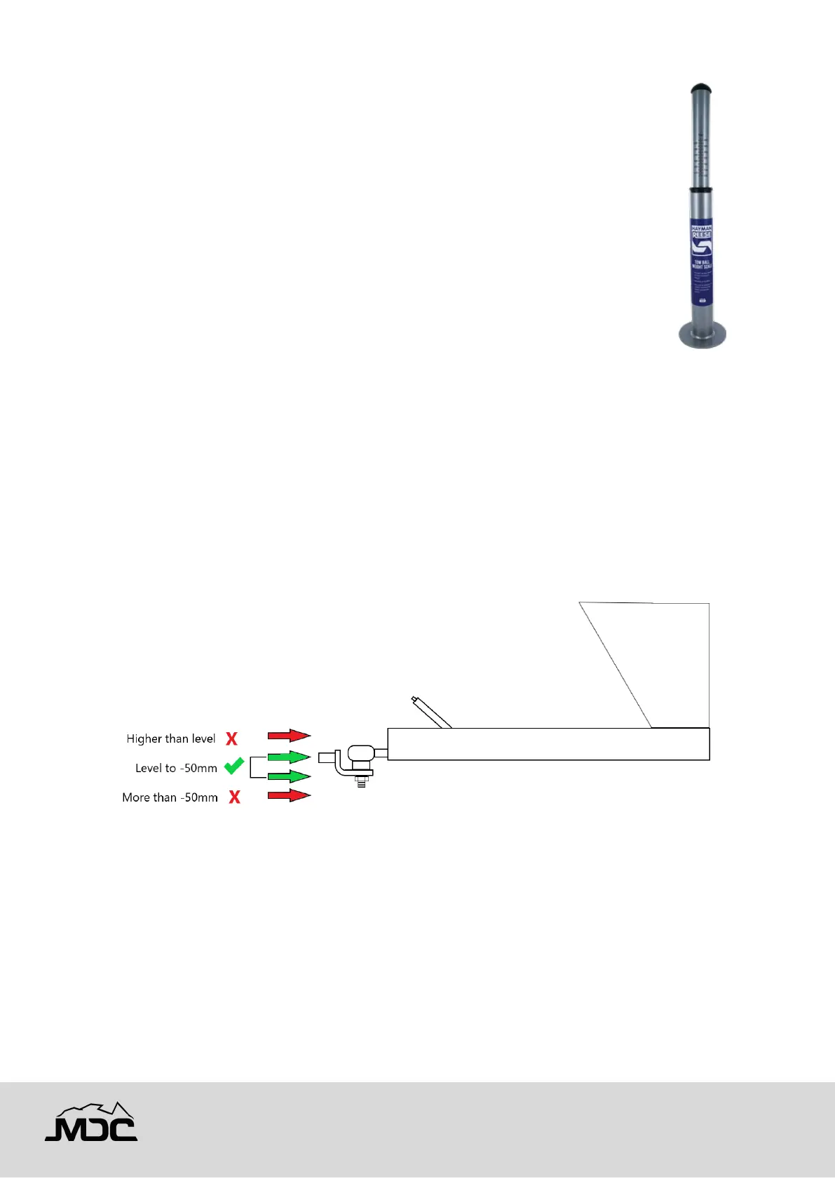 practice with your MDC trailer is when loaded and hitched to the vehicle, the drawbar is NO higher than level.
