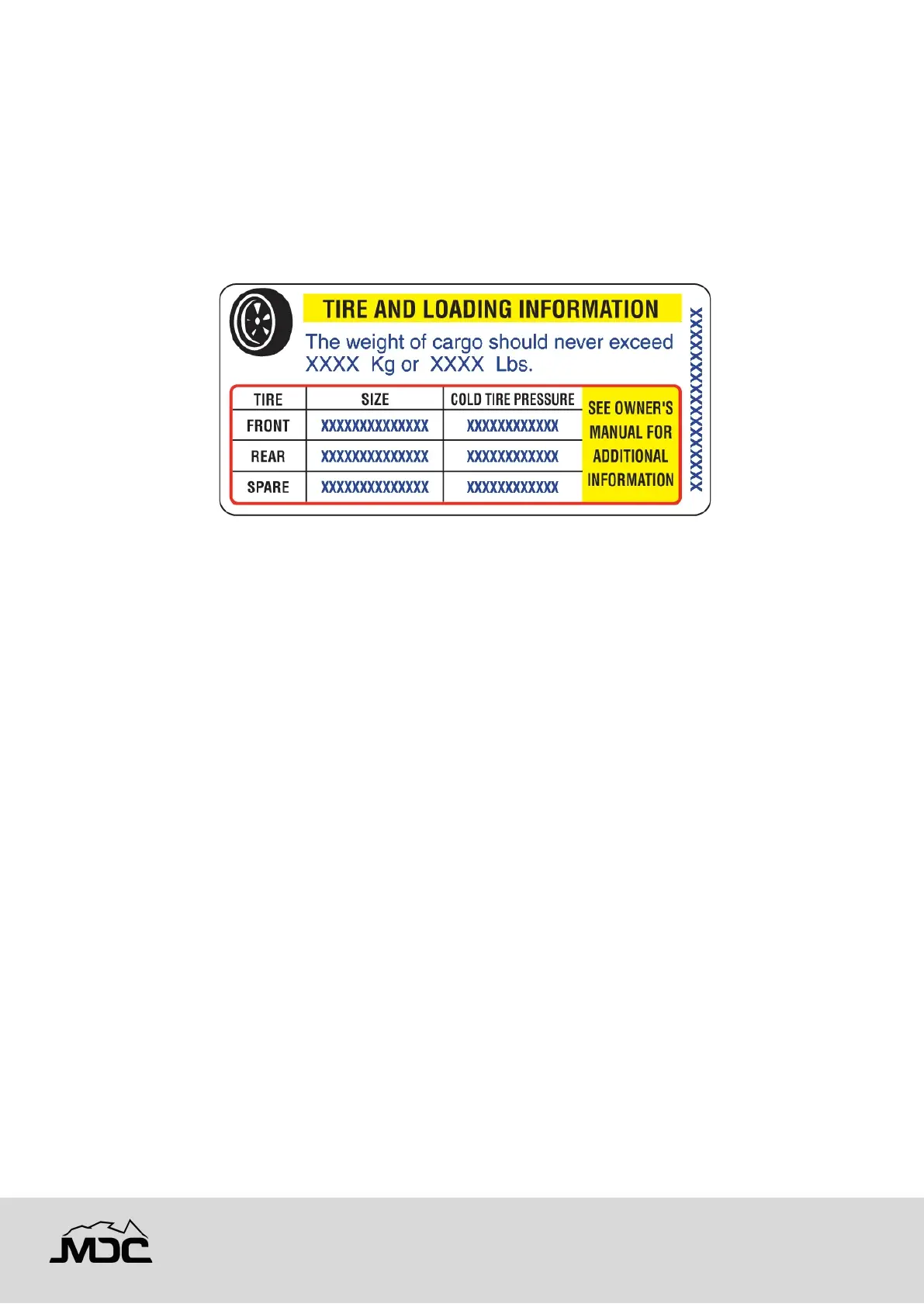 This section of the User Manual contains tire safety information as required by 49 CFR 575.6.