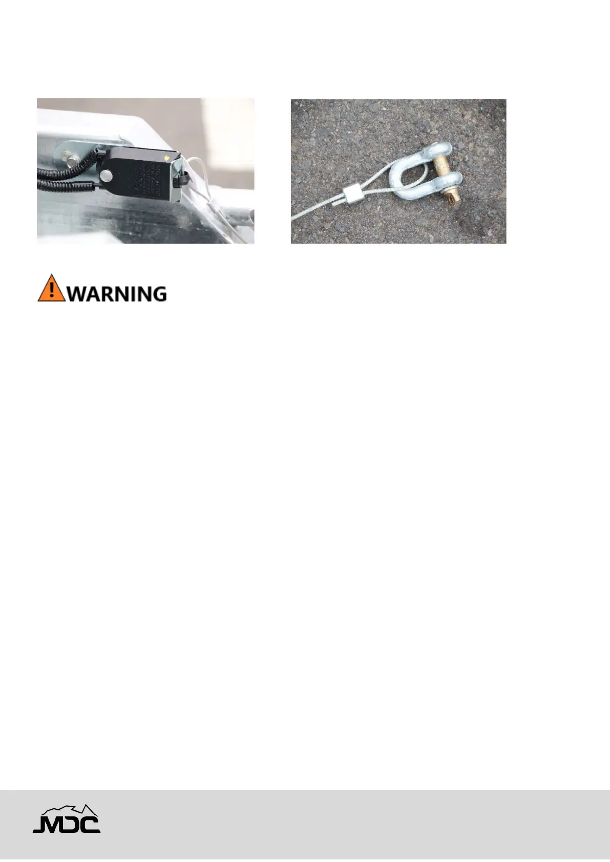 • Do not connect to the safety chain shackle. Connect only to a fixed structural part of the tow vehicle.