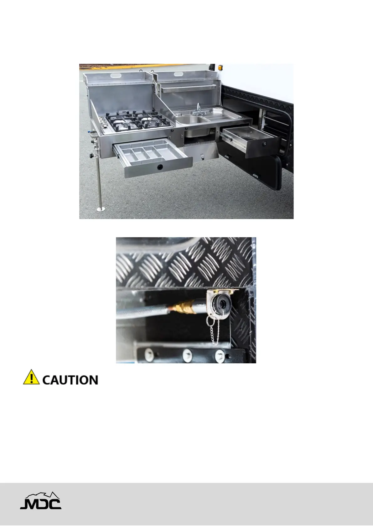 CAUTION – Use of the slide out kitchen cooktop without the annex or awning may adversely affect the safety