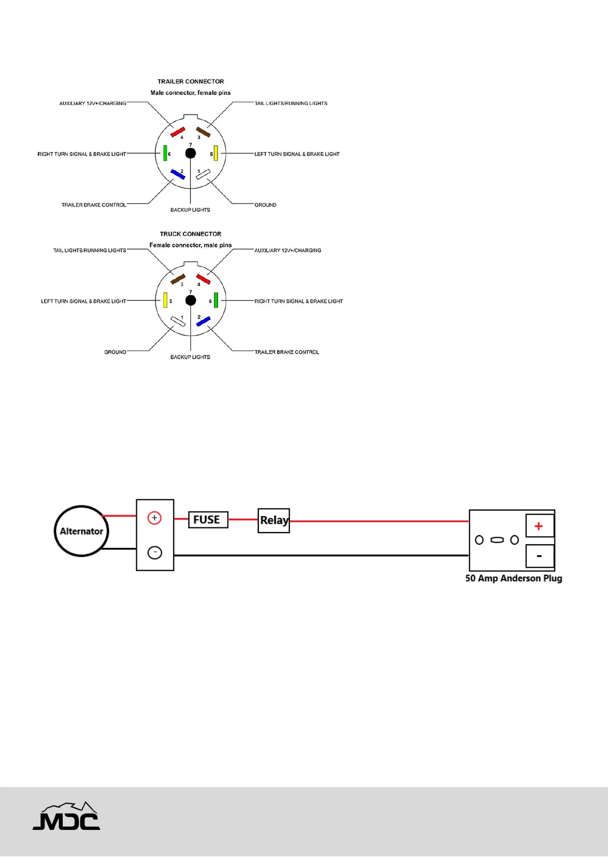 The Anderson plug can be connected to the tow vehicle start battery on the vehicle and should include the