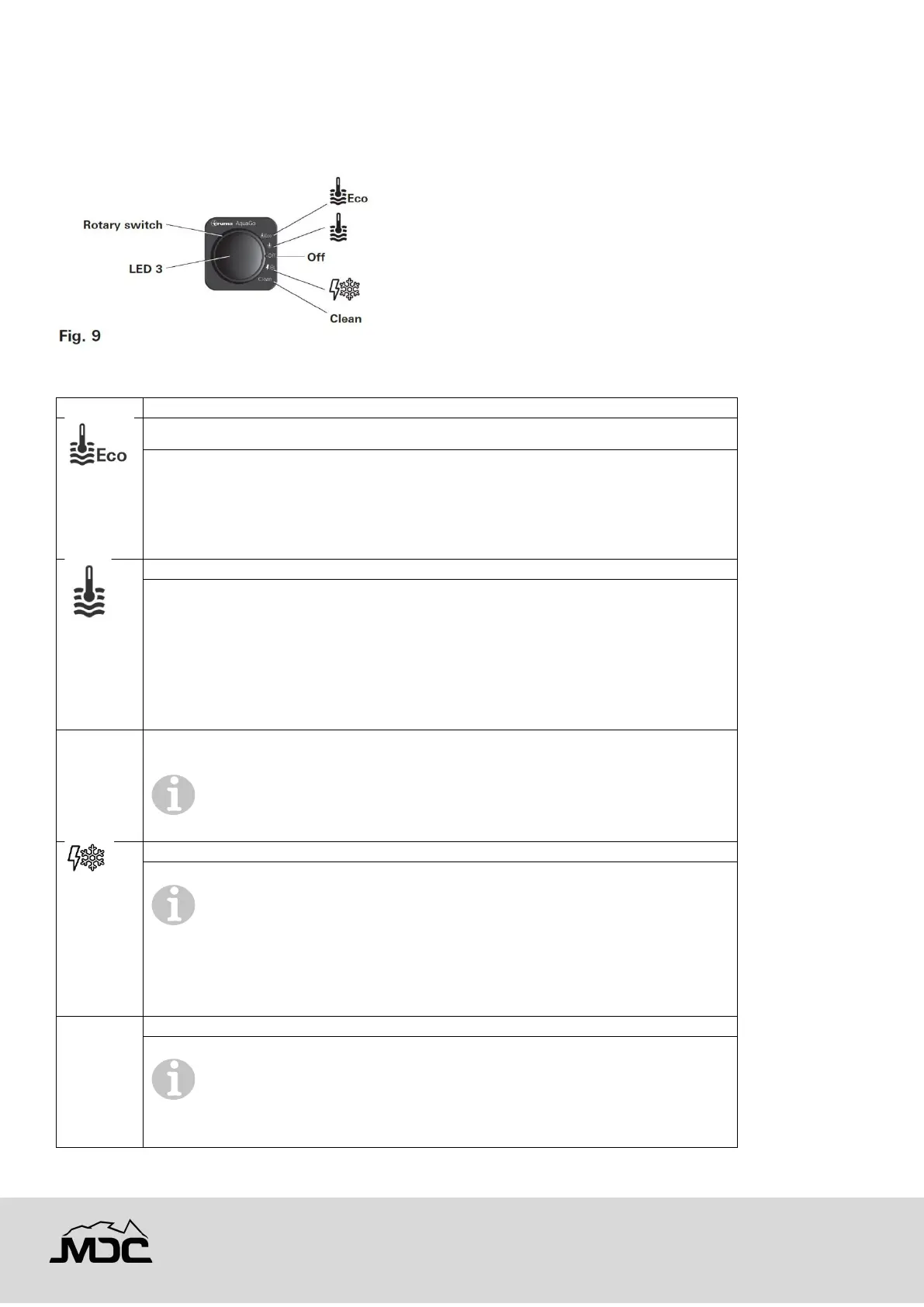 With the rotary switch (Fig. 9) you can choose between the following operating modes: