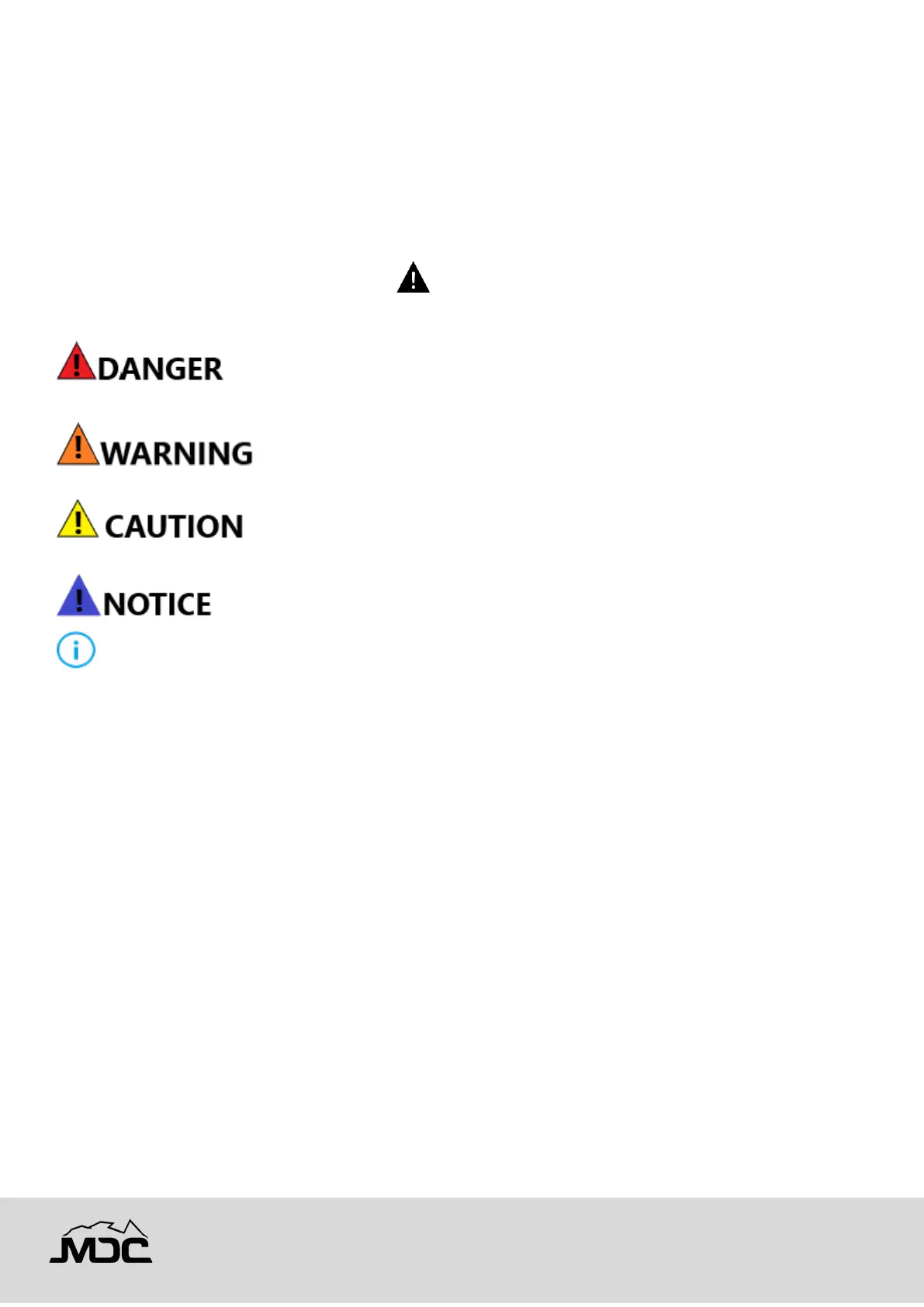 - Immediate hazards which WILL result in severe personal injury or death if the warning is