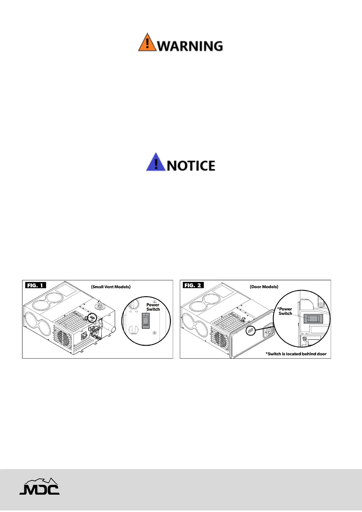 o Non-door models (LD or Small Vent) have a power switch on the outside of the Furnace.