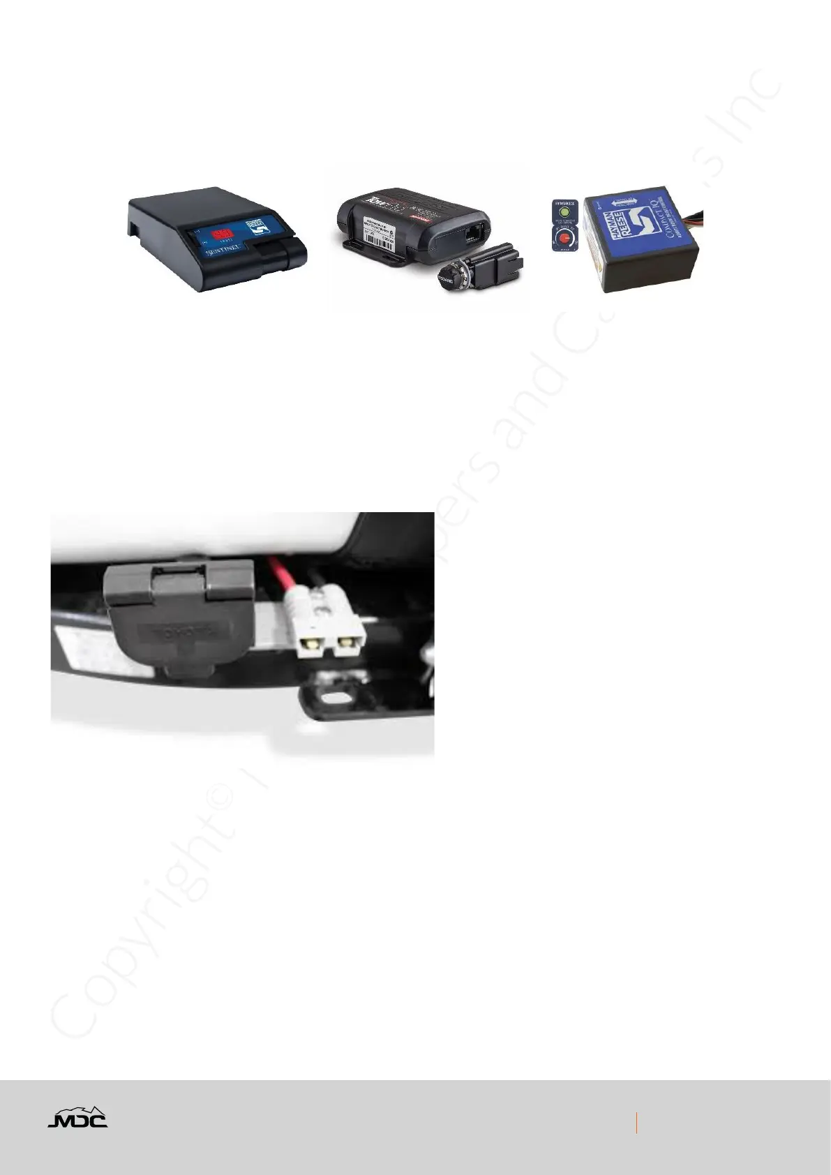 the caravan. For this purpose and Anderson plug connection is tted to all MDC caravans on the drawbar. Your vehicle