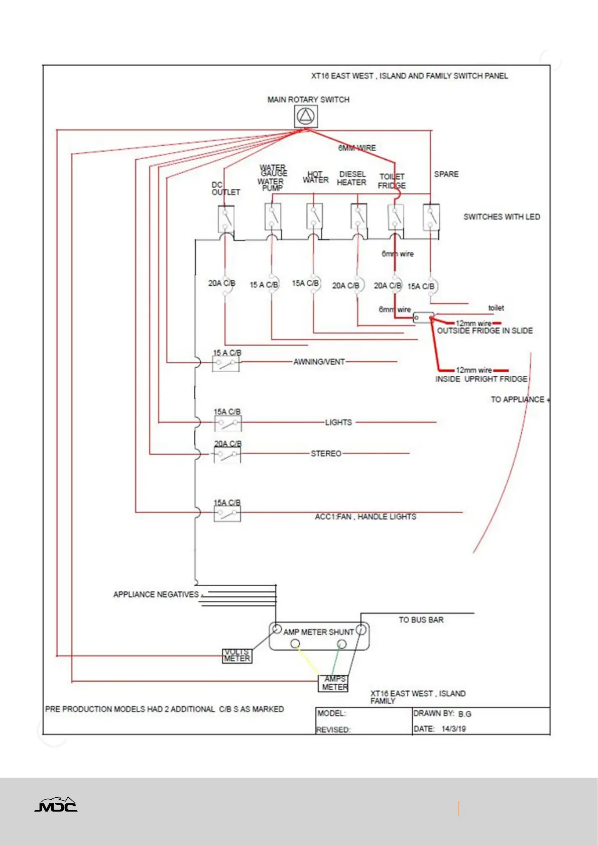 MDC XT16HR ISLAND 2021 - Wiring Diagram Switch Panel