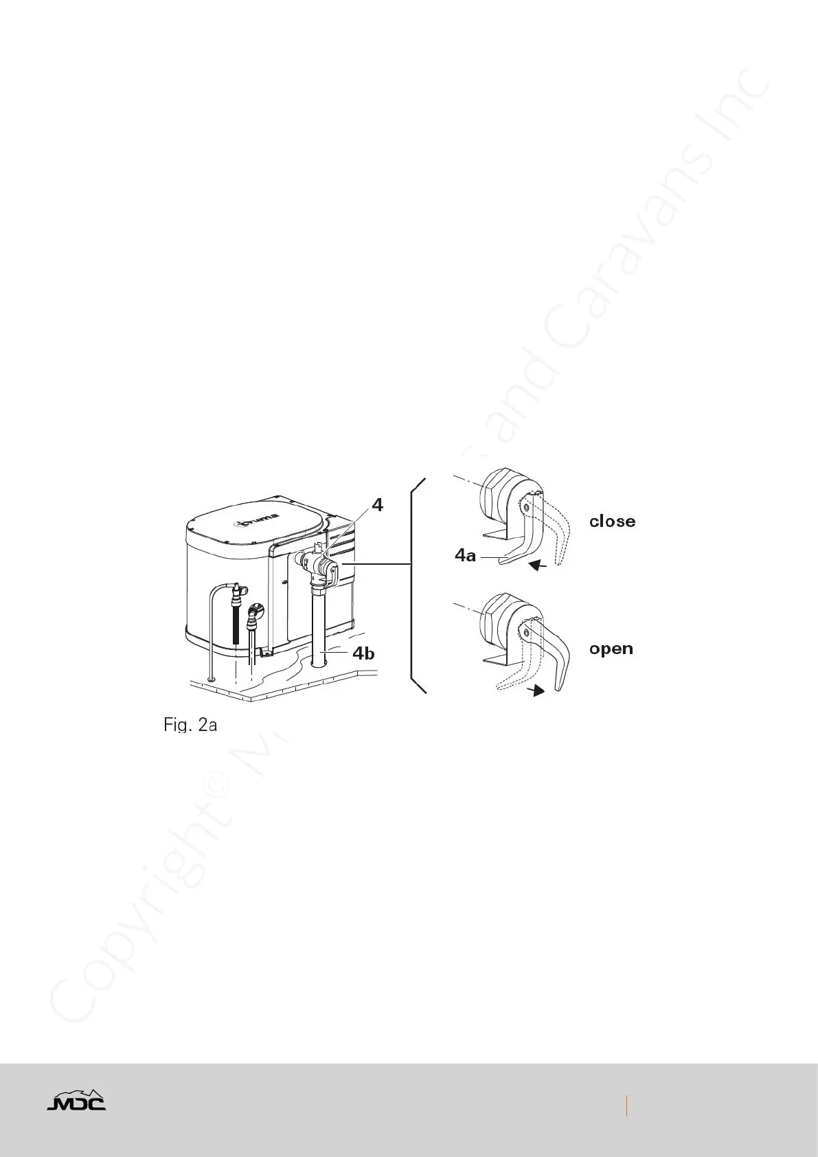 • Open drain valve (Fig.2 - 3). Lever in the “f” position (drain). The water heater is now drained directly to the