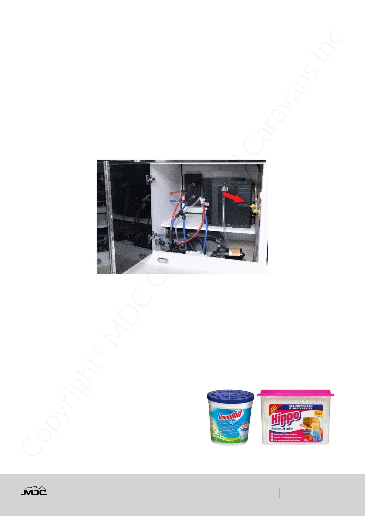 Your caravan is tted with plumbed gas with the regulator and gas bottle placement at the front of the trailer. Always
