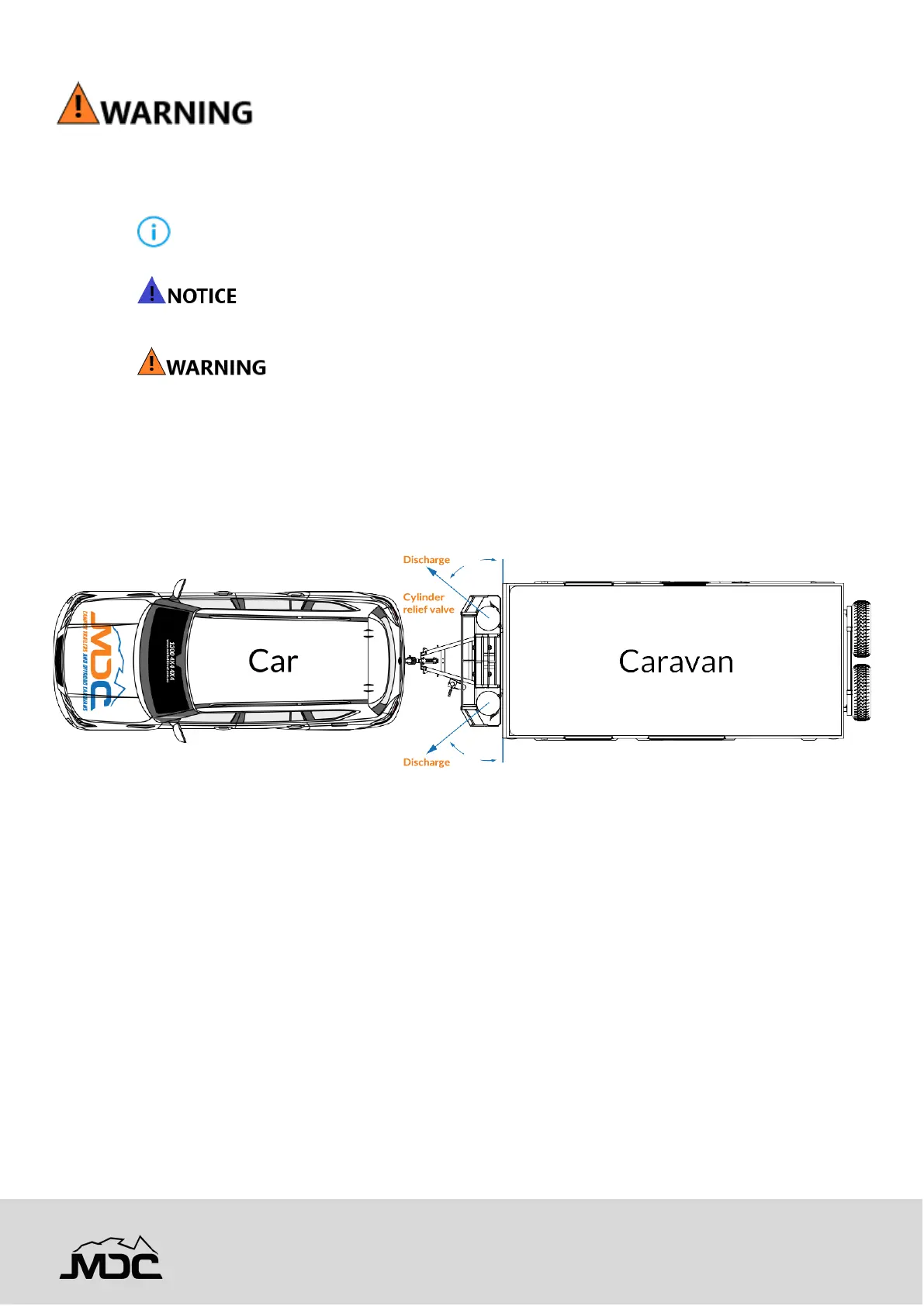 DO NOT place propane cylinders inside the vehicle.