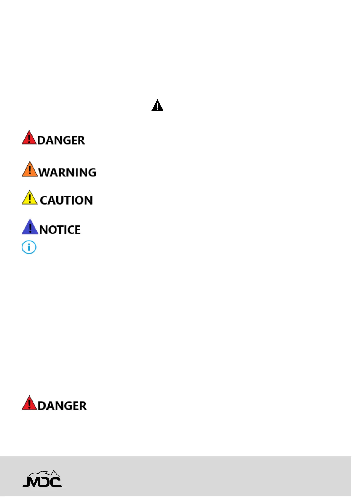 - Immediate hazards which WILL result in severe personal injury or death if the warning is