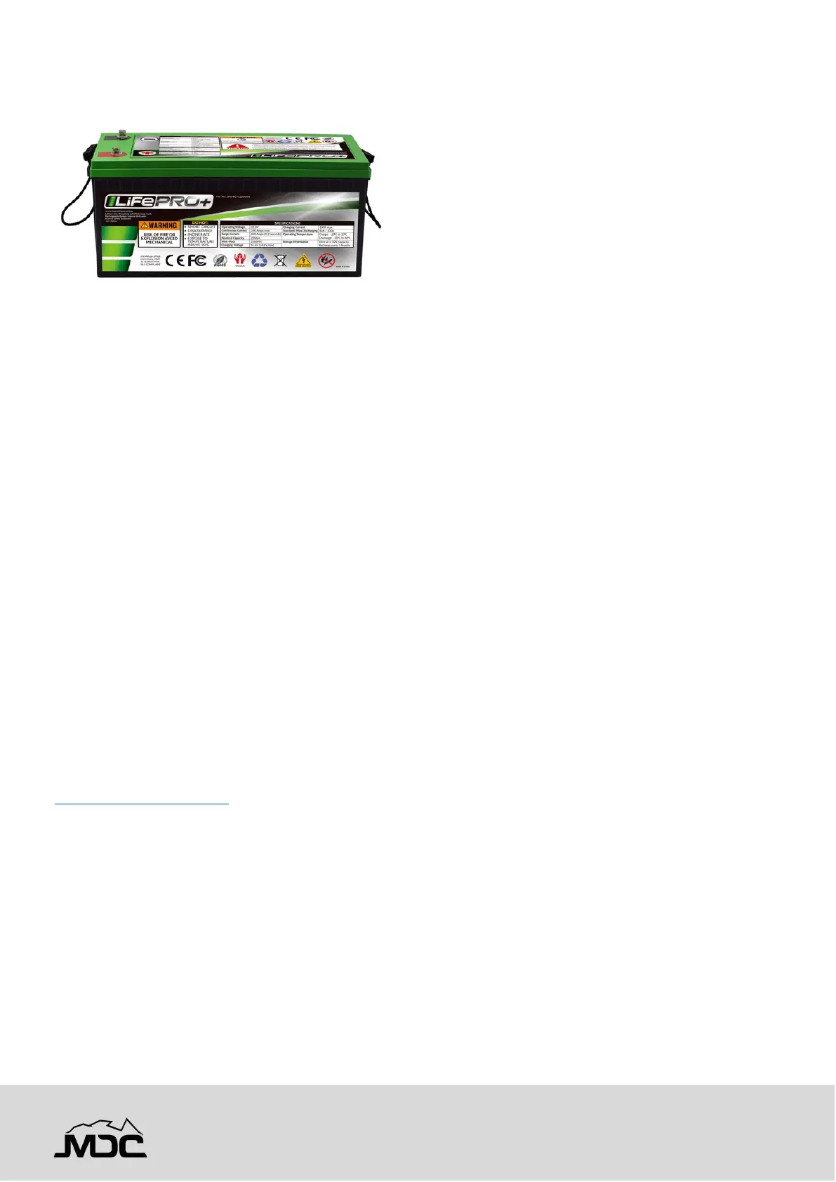 For further information regarding your lithium battery, refer to the LiFePRO+ website