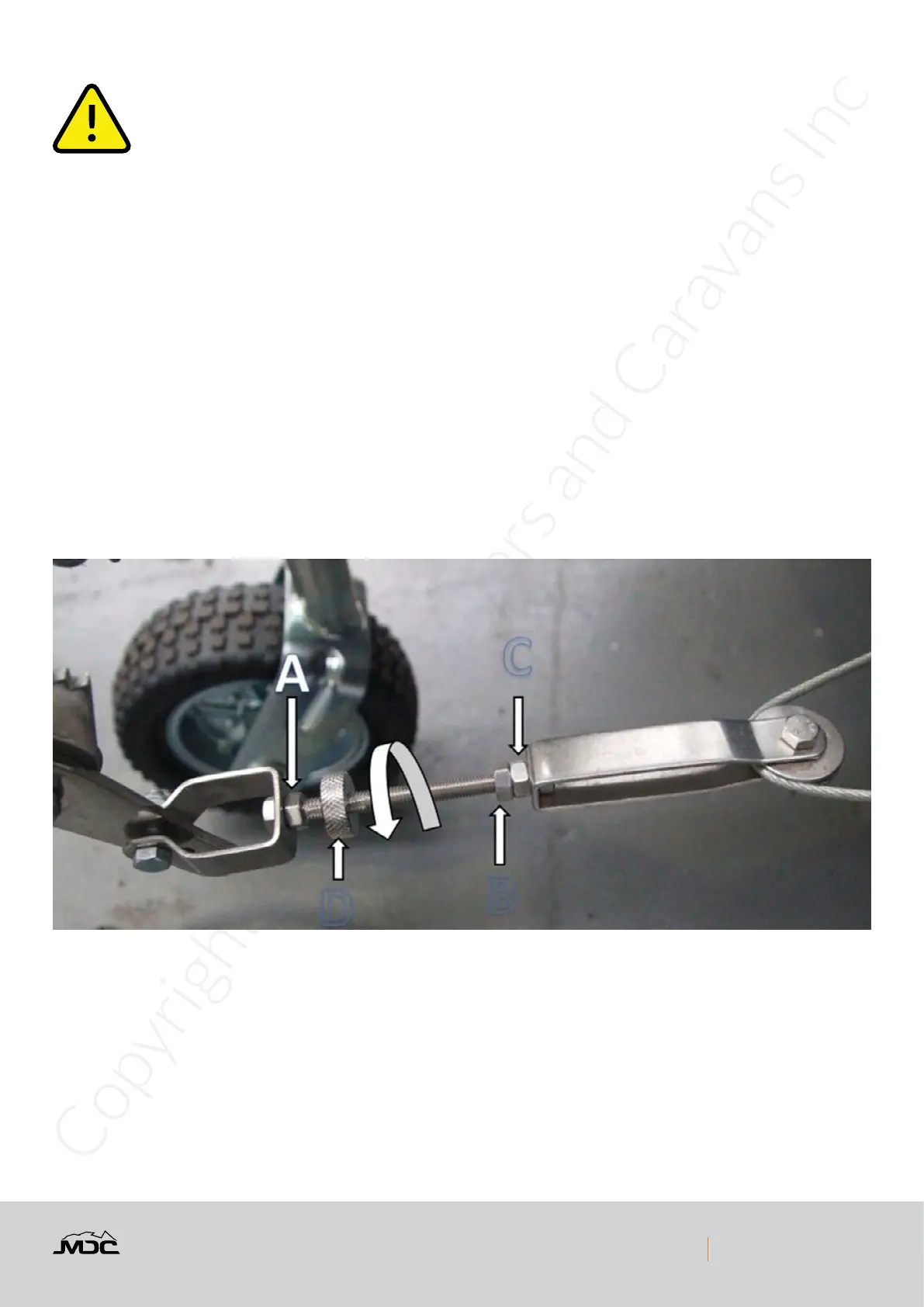 tighten the handbrake cable, turn the adjuster wheel D in a clockwise direction. Once adjusted retighten lock nuts and