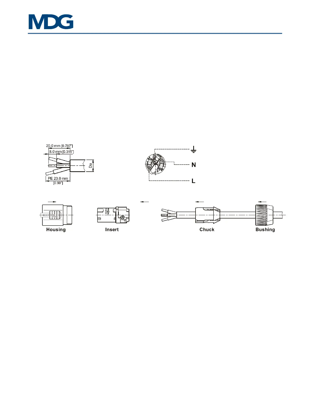 • Cable Preparation: Da = 9.5 [0.374”] - 15.0 [0.59”]