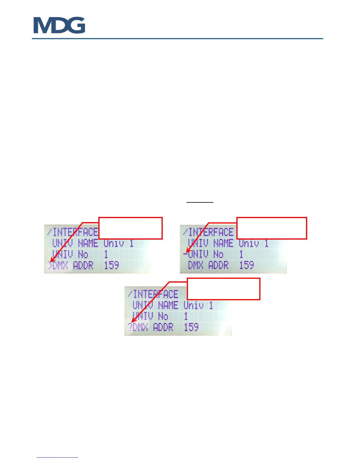 Interface Menu allows the user to define or verify the communication via DMX/RDM.