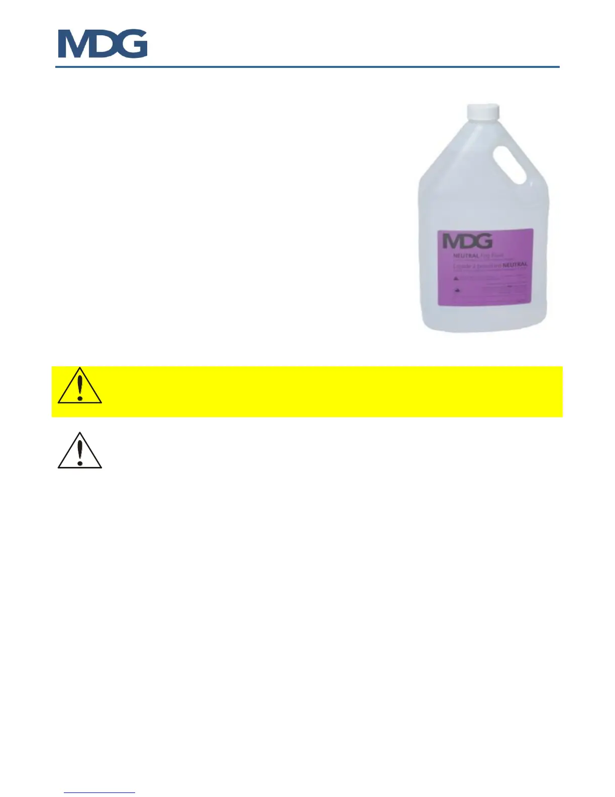 Use only MDG Neutral Fog Fluid. Not doing so will void the warranty and