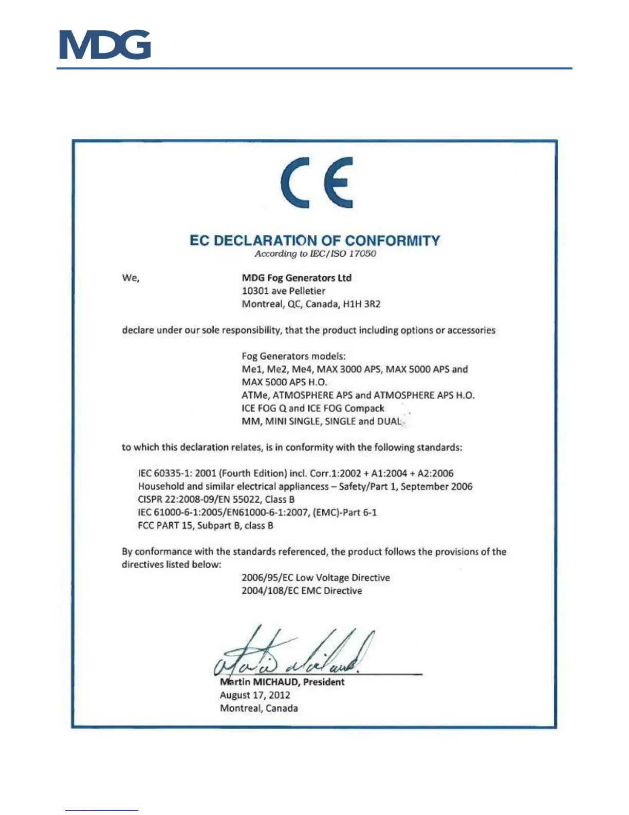 MDG ME2 - Declaration of Conformity