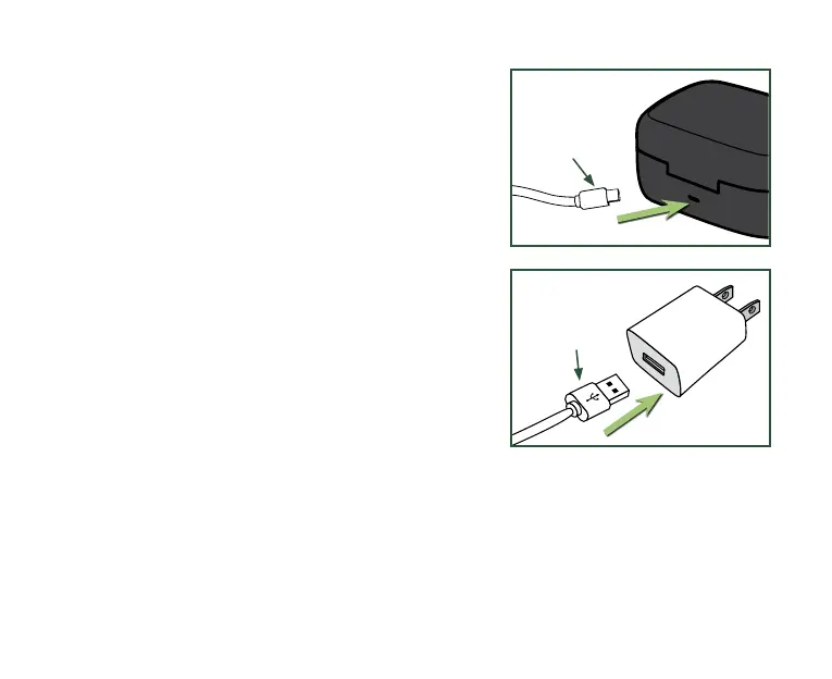 a charging case, a cord, and a power adapter.