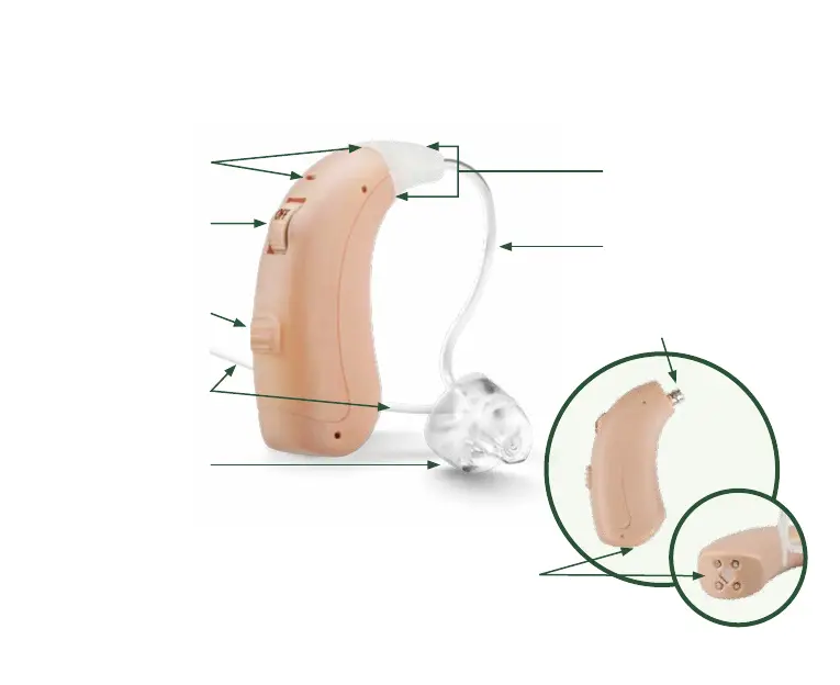 MDHearingAid VOLT+ - VOLT Diagram; Hearing Aid Components; Charging Port and Body